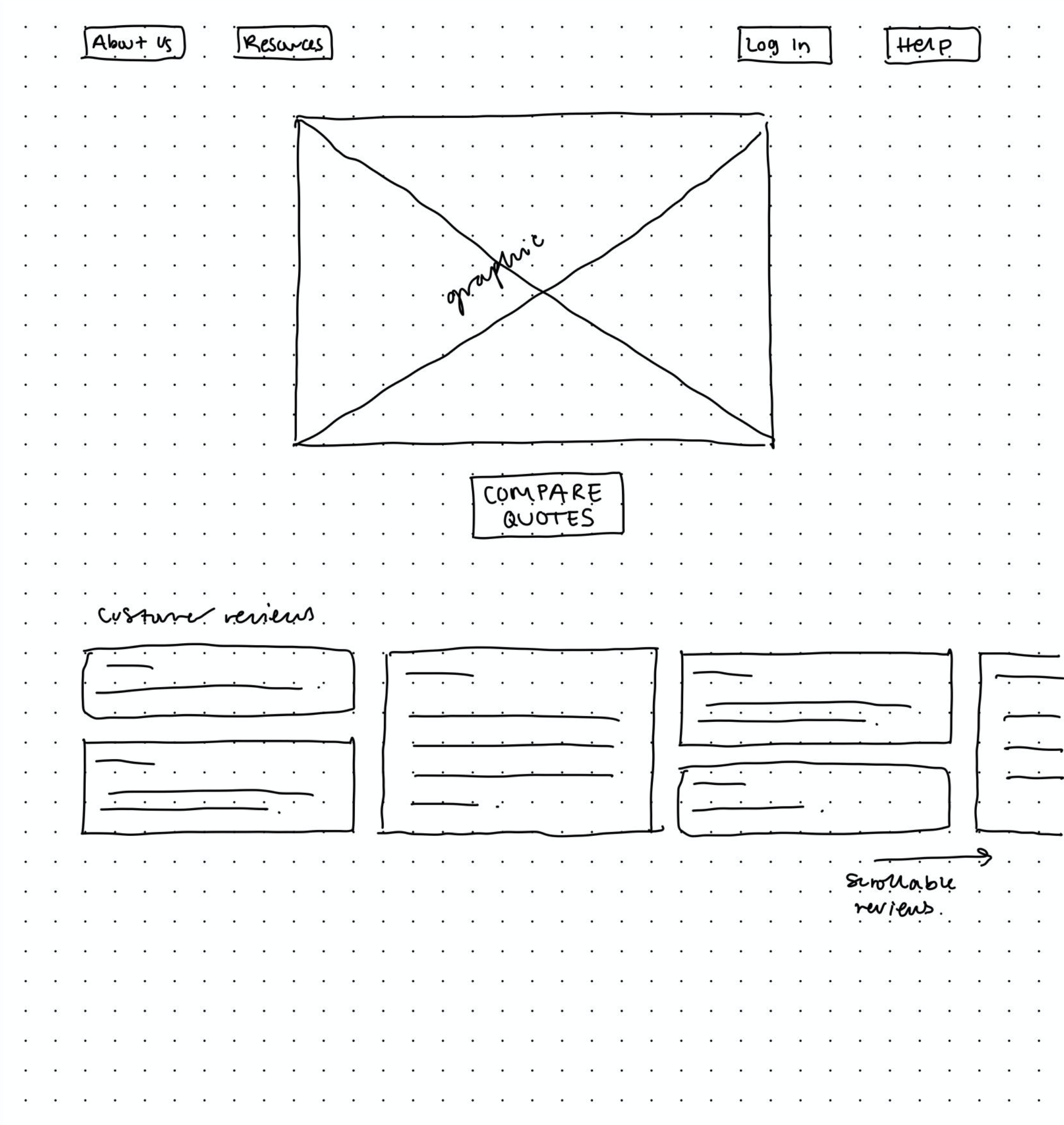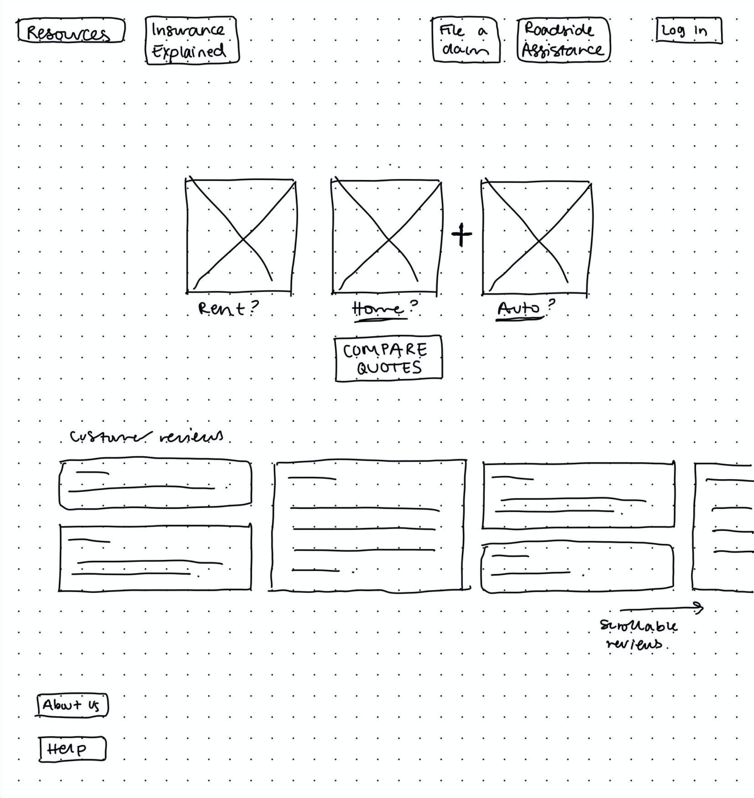 Deciding what elements were necessary in the quote estimation flow was fairly clear, however sorting between the resources and help categories was less straightforward. Pages that would need to be accessed in emergencies were collected under the “resources” category while policy management tools were located under “help”.